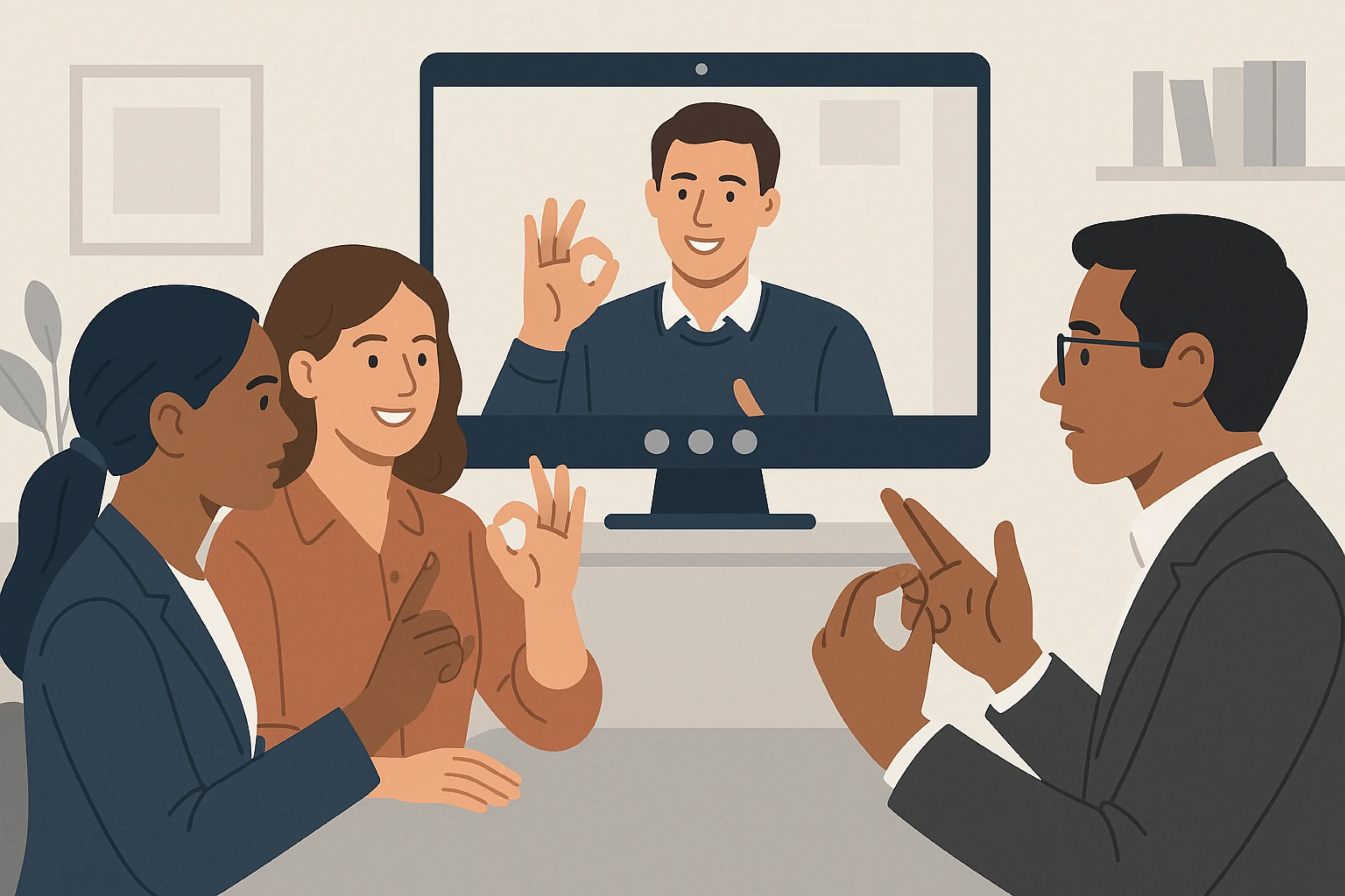 聴覚面では、リアルタイム字幕や手話通訳が役立つ。特に字幕は、聴覚に制約のある人だけでなく、雑音の多い環境で参加している人や、第二言語で会議に臨む人にとってもありがたいサポートになる。教育や動画コンテンツの現場で示されているように、集中を保ちやすくなる効果はオンライン会議でも期待できる。