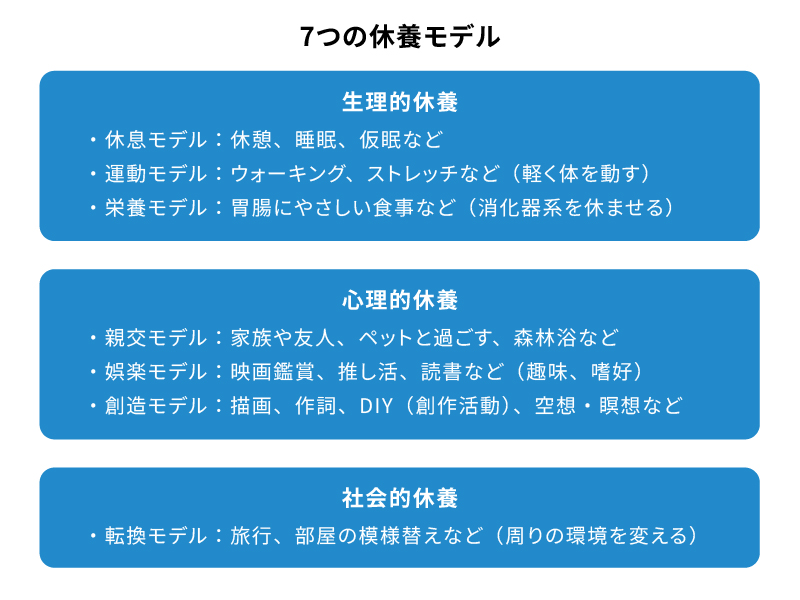 7つの休養モデルを組み合わせ、攻めの休養で活力をチャージ