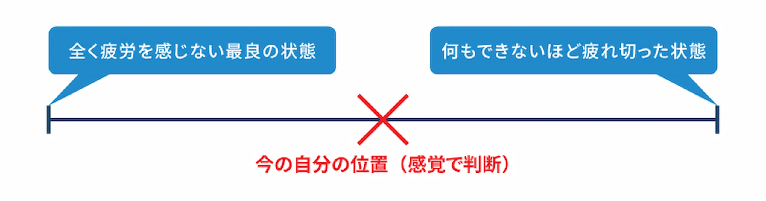 *² 紙などに引いた線の左右の端が「全く疲労を感じない最良の状態」と「何もできないほど疲れ切った状態」としたら、今の自分はどの位置にいるのか印をつける検査。参考:疲労感VAS検査方法(一般社団法人 日本疲労学会)