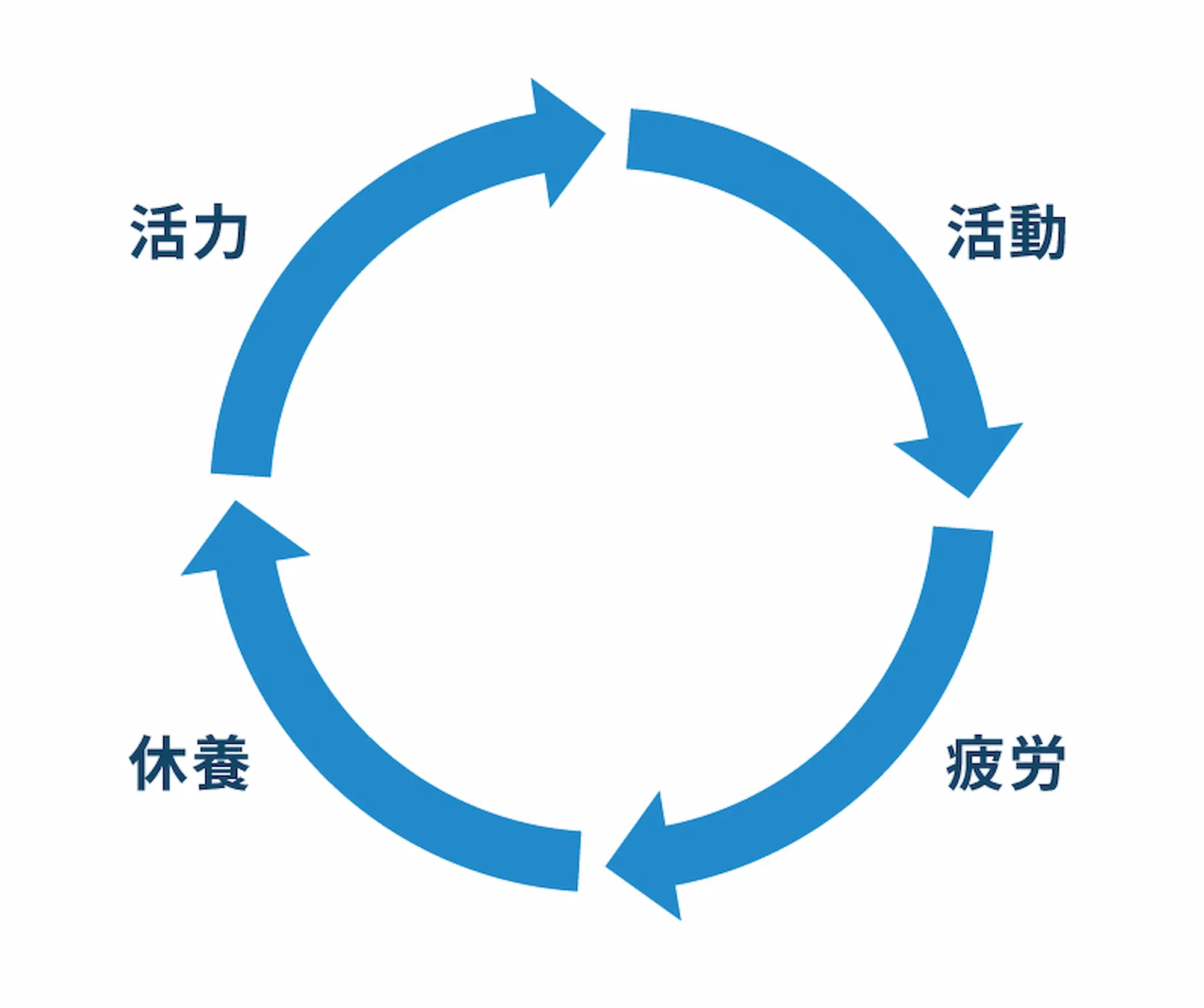 片野 休養や疲労にまつわる言葉の関係性から考えると理解しやすくなると思います。「休養」の対義語は「活動」で、「疲労」の対義語は「活力」です。リカバリーは「活動-疲労-休養」のサイクルで発想されがちですが、疲労を打ち消したいのなら、疲労の対面にある活力を盛り込み「活動-疲労-休養-活力」のサイクルとする必要があります。