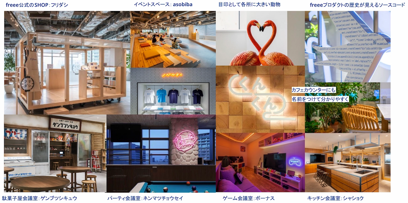 その中から、コミュニケーション創出につながりそうなものをピックアップしてオフィスづくりに反映しています。駄菓子屋やゲーム、キッチンなどをコンセプトにした会議室で、一見すると統一性がないように見えますが、「多様であることもfreeeらしさだよね」という考えのもと、いろいろな要素を詰め込んだオフィスにしているんです。